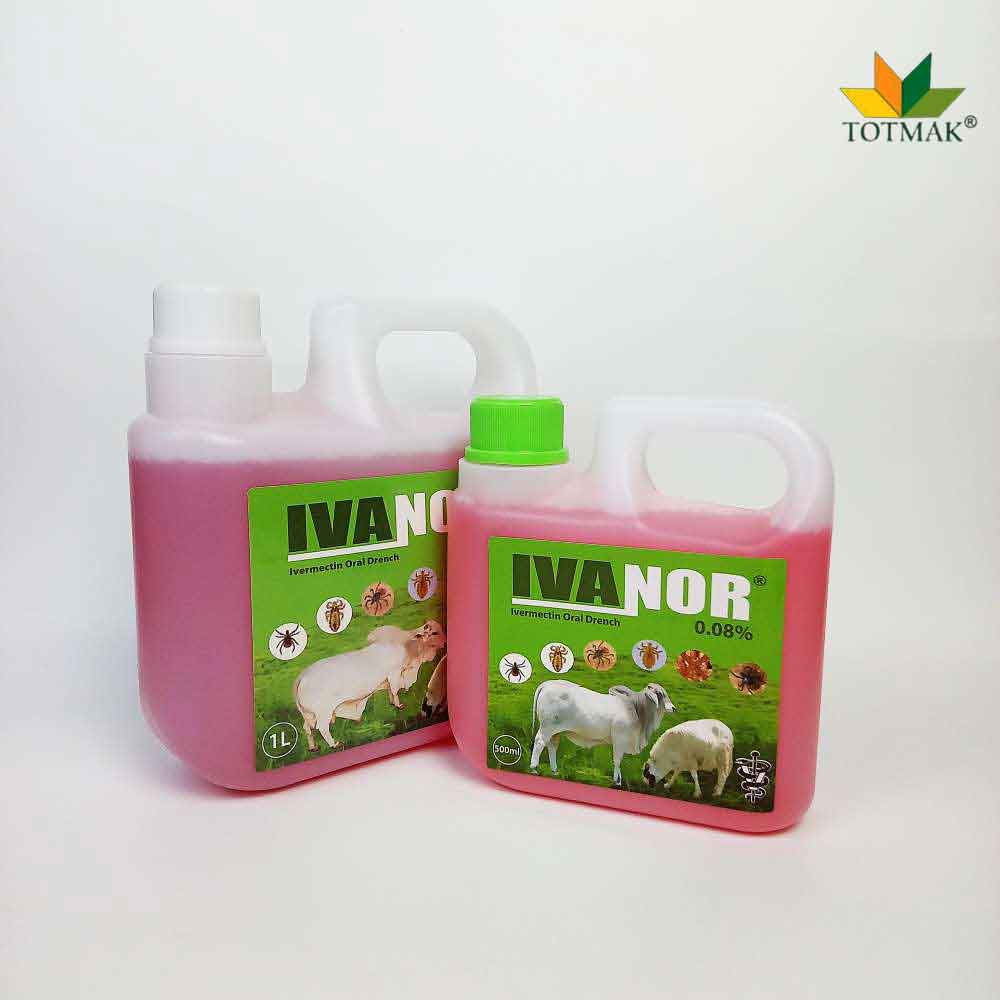 IVANOR Oral Drench is a broad-spectrum anthelmintic for calves, cattle, sheep, and goats. It effectively treats adult and immature gastrointestinal worms, lungworms, and nasal bots. Ideal for use in deworming programs, IVANOR enhances animal health, productivity, and weight gain. Safe and potent, it ensures full parasite control across multiple livestock species.